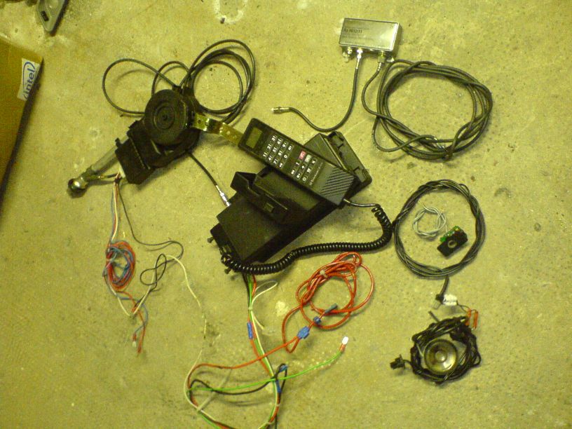 An den Hörer (auf dem Bild unten direkt an der "Zentrale" angeschlossen) kommt ein normalem ISDN-Verlängerungskabel (ich habe ein neues dazu gelegt), welches dann in den Kofferraum zu führen ist.