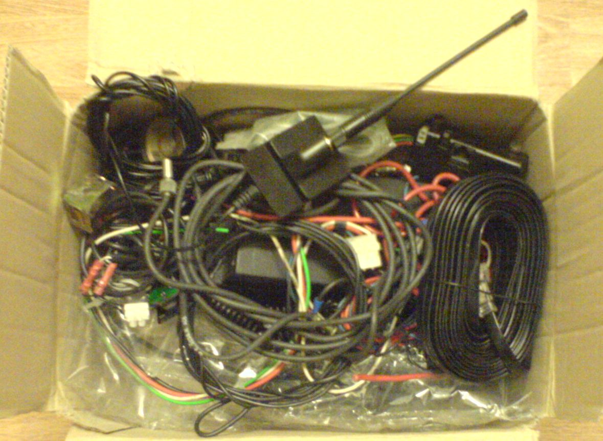 Das normale Radio kann mit der mitgelieferten Weiche (rechts oben im Bild) auch über die Automatische Antenne betrieben werden.