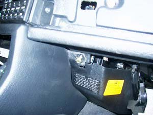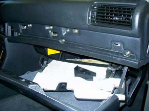 1. Rahmenwechsel Nachdem ihr das Radio ausgebaut habt, greift in den Radioschacht, auf der rechten Seite und fühlt nach einem kleinen Hebel am Rahmen, der die Uhr bzw. den alten BC raushebelt. Den zieht ihr nach vorn, dann kommt euch die Uhr entgegen. Das Klimabedienteil muss ebenfalls entnommen werden. Hinter dem Schalter für die Heckscheibenheizung (vorsichtig mit einem Schraubendreher raushebeln) befindet sich eine Schraube. Die Befestigungsschrauben für den Rahmen liegen unter den Zierleisten. Öffnet das Handschuhfach und löst die innere Verkleidung, dann greift ihr mit der Hand hinter und erfühlt die Befestigungsmutter der Zierleiste. Es gibt nur eine, die Leiste ist sonst gesteckt. Sie sitzt rechts, wie ihr dem Bild entnehmen könnt.