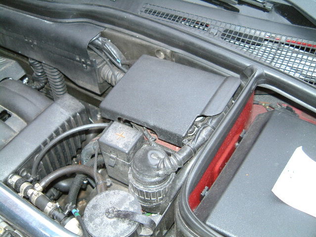 , entfernt die Abdeckung im unteren Teil des Plus-Poles nach unten, die obere sowieso und löst die Muttern der Heizungsventiele. Die beiden Elektro-Stecker trennen und den oberen aus der Halterung nehmen. Dann noch der Stecker des Motorkabelbaumes weg, und man kann mit dem Ringschlüssel die 10er Mutter des Pluspoles lösen. Diesen schiebt man beiseite damit man mehr Platz hat, es hängt nähmlich sonst der eine Halter des Steckers im Weg.