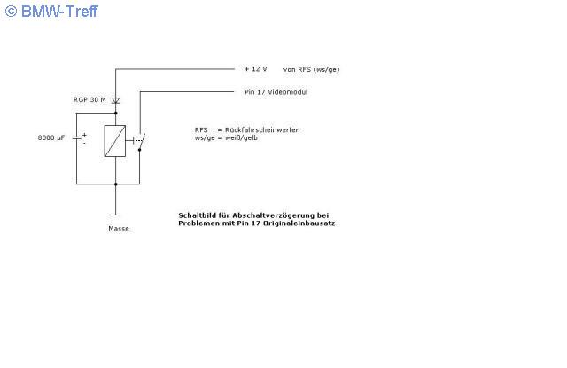 Für die originalgetreue Kamerasteuerung solltest du zusätzlich einen großen Kondensator (Elko 25V ~7mF) parallel zur Spule des Miniaturrelais schalten und eine Sperrdiode in die Rückfahrlichtleitung (zur Spule des Relais). Dann hast du eine Ausschaltverzögerung um die 5 Sek. damit beim hin und herschalten während des Rangierens nicht dauernd hin und her schaltet