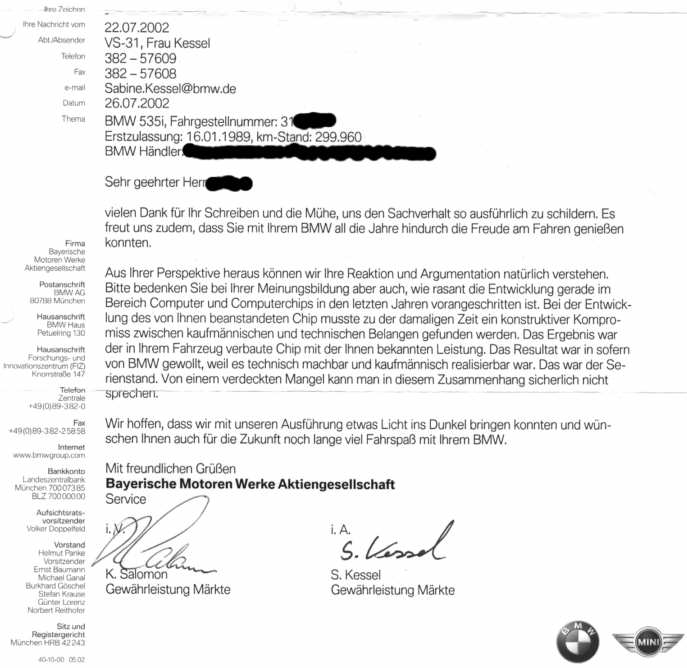Wollt Ihr meine Anfrage an BMW auch noch haben ?