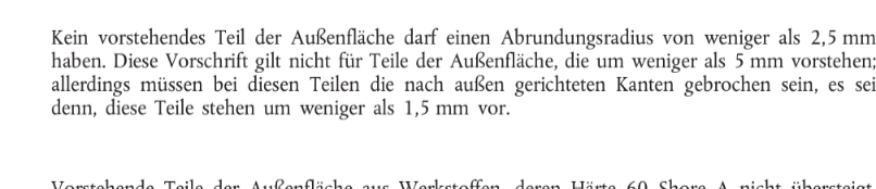 Und es steht natürlich nicht explizit in der ECE. Die ist halt wie jeder Gesetzestext immer sehr allgemein. Aber an einer Ausenkontur darf eben kein Radius unter 2.5mm sein