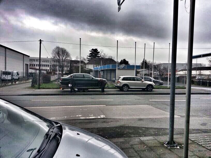 Nun ist das Auto auf dem Hänger und unterwegs in sein neues zu Hause,