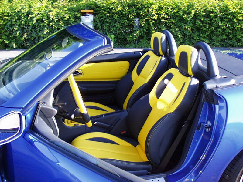 Gelbes Leder mit roten Nähten und die linke hintere Kopfstütze in grün? Kein Problem.