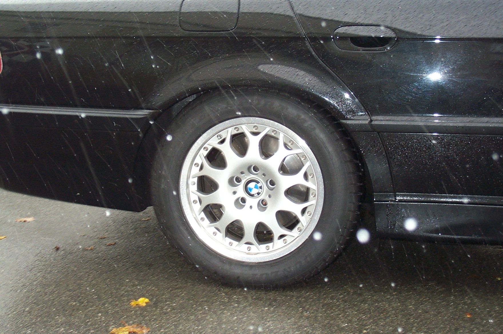 Die BMW Plastik-Nabendeckel fehlen, da diese immer beim Wechsel von Winter auf Sommer und umgekehrt umgesteckt wurden