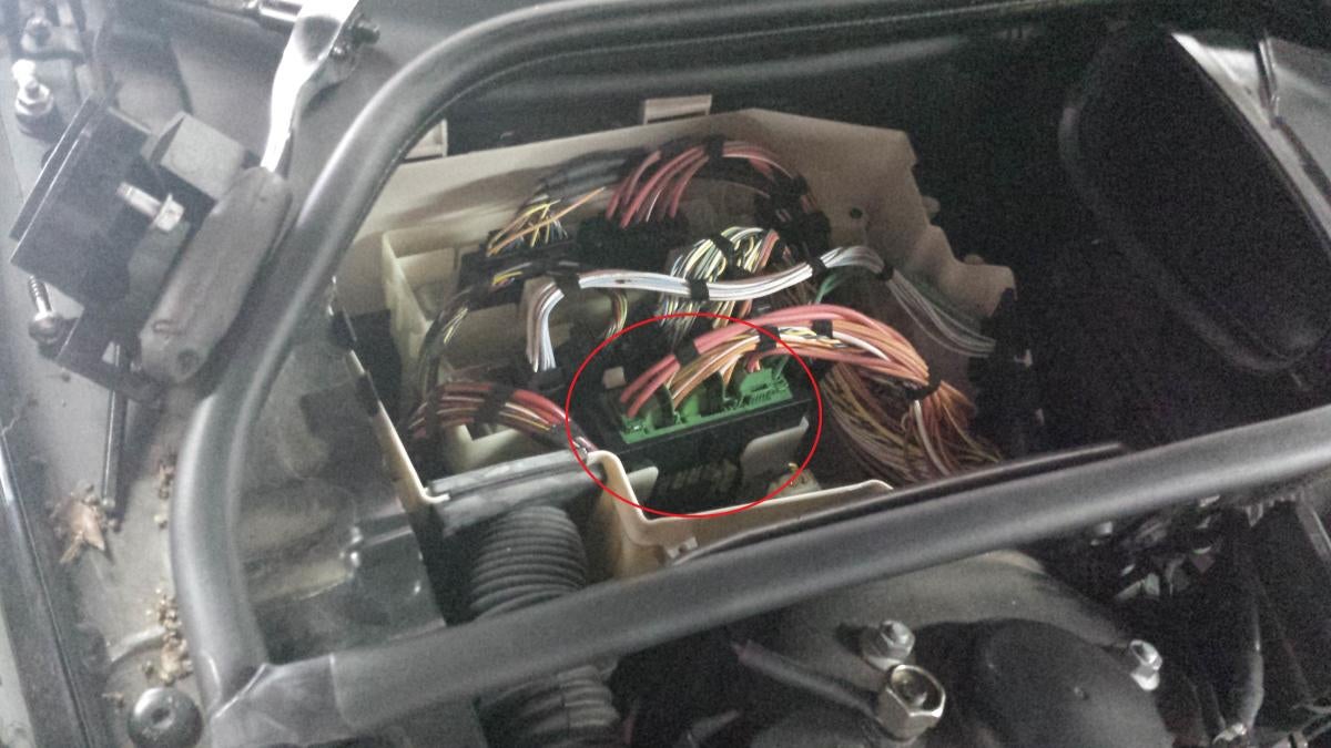 Schau hier, Beifahrerseite unter dem Pollenfilterkasten: