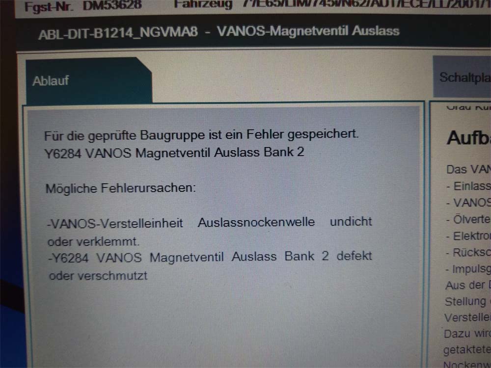 Fehler ist ziemlich eindeutig. Gestern habe ich die Magnetventile an Bank 2 ausgebaut, gereinigt und vertauscht wieder eingebaut. Also Einlass und Auslass vertauscht. Fehlerspeicher gelöscht. Kommt leider wieder. Liegt also wohl nicht an dem Ventil. Um ganz sicher zu gehen habe ich dann noch die Leitung durchgemessen. Bei Zündung "an" kommen 8,5V an. bei Zündung "aus" kommt nichts. Wird wohl auch passen. Darum bleibt wohl nur eins. Verstelleinheit auf der Nockenwelle ist defekt oder klemmt.
