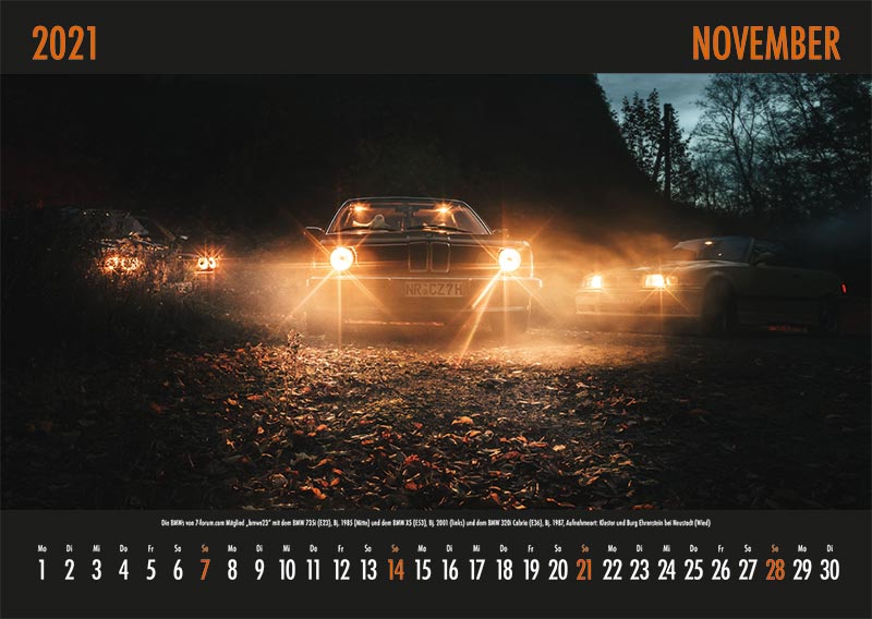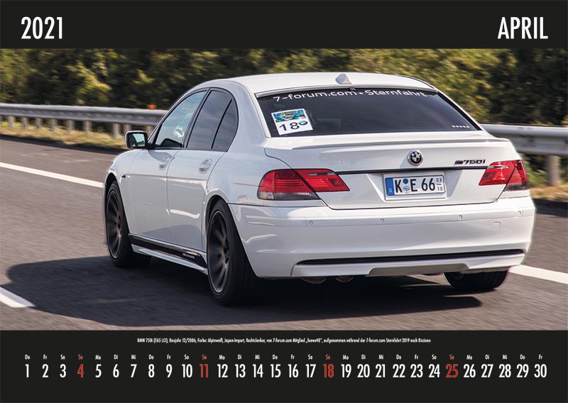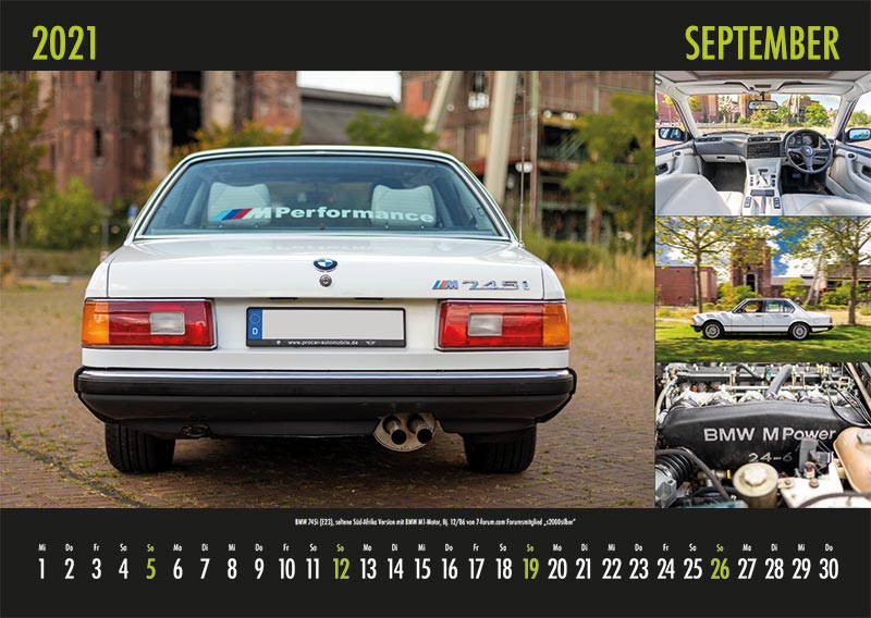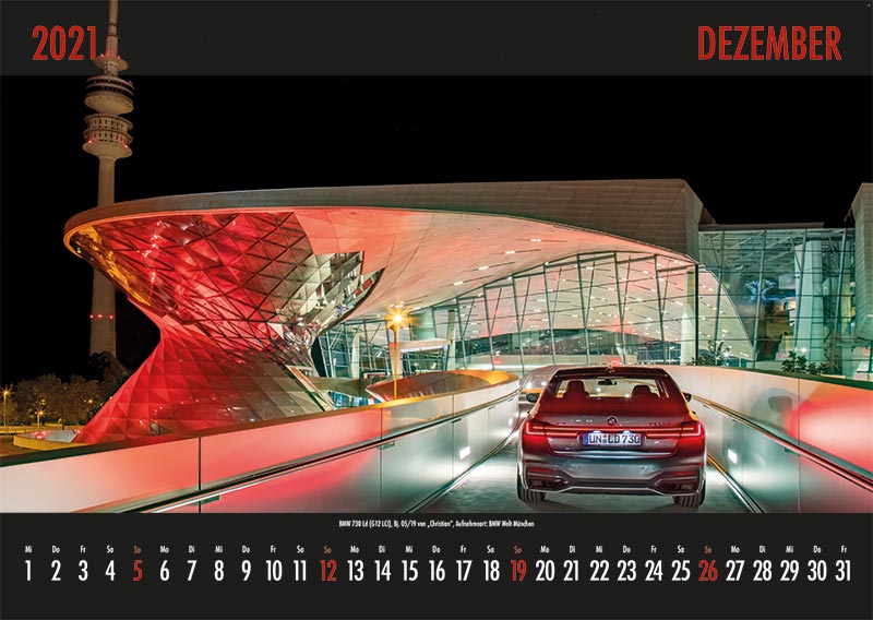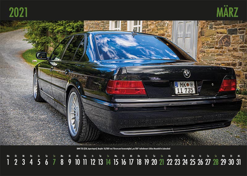 - jede BMW 7er-Modellreihe soll im Kalender mind. 1x vertreten sein