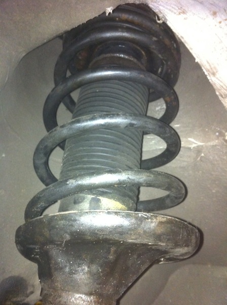 Die Feder beschreibt einen Bogen. Hinzu kommt, dass die Schrift auf der Feder nach innen zeigt und nicht, wie von Eibach vorgesehen, von außen lesbar ist. Beide Federn sind absolut gleich, es würde sich also nichts ändern, wenn ich durchtausche.