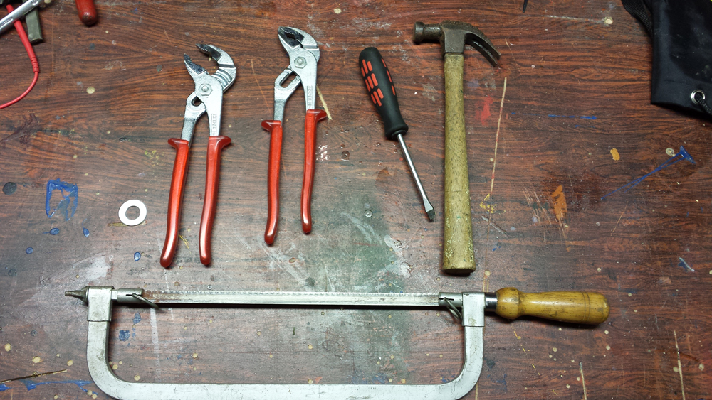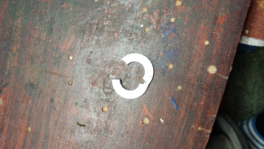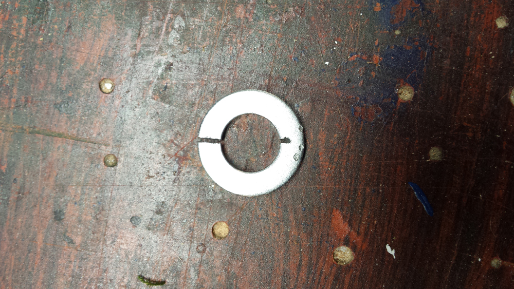 Los gehts ! Die Unterlegscheibe wird iwo eingespannt, am besten Schraubstock und dann aufgesägt :