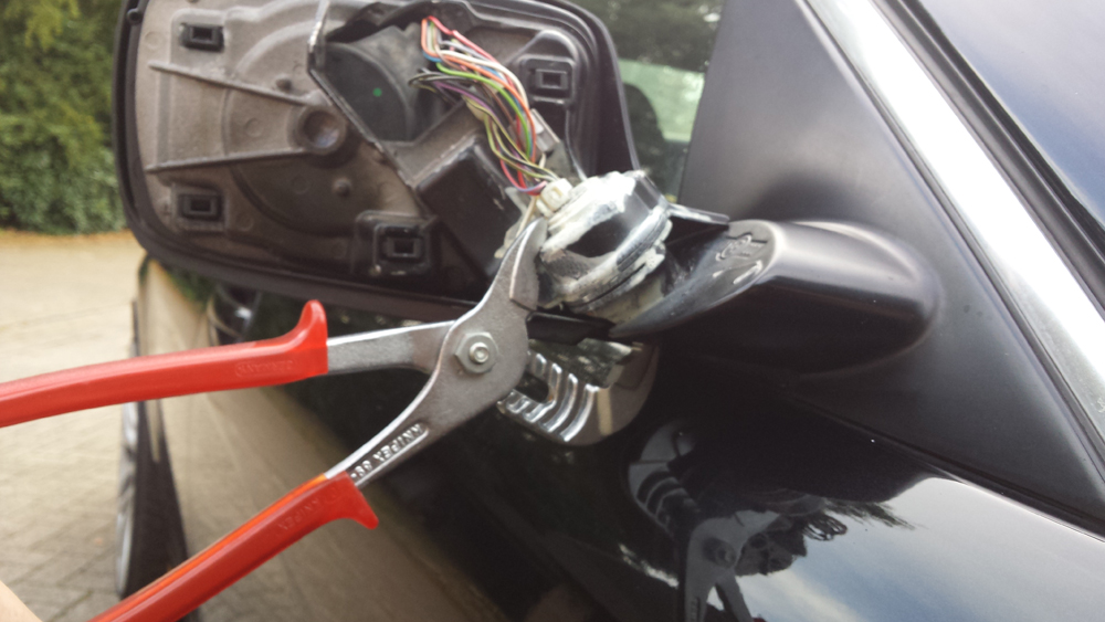 Noch als Ergänzung: Schon das Spiegelglas auszuklipsen birgt die Gefahr die Stellarme des Drehmotors aus der Verankerung zu reissen oder abzubrechen...Ihr solltet Geduld, Fingerspitzengefühl und Industriekleber zur hand haben! Es gibt diese Kunststoffteile nicht einzeln, wenn euch das passiert und ihr es nicht gelöst bekommt könnt ihr einen Kompletten Stellmotor kaufen Der versuch die Kunststoffverkleidung abzumachen ohne das Spiegelglas auszubauen wird nur mit Zerstörung (Abbrechen der Klips) der Verkleidung enden.