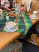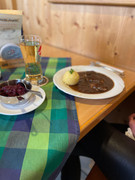 Wir haben wieder den Nebenraum mit Kamin. Das Essen ist ja wie bekannt recht üppig, uns geht also keiner hungrig vom Tisch.