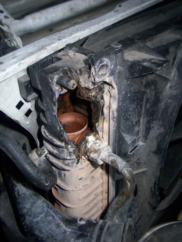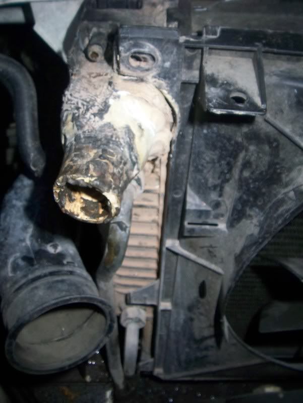 Der Kühler,sowie die alten Schläuche sind voller Ölschlamm.
