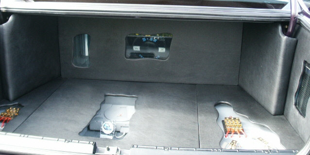 Mein letztstand ist so, aber ich will das alles noch ein wenig Verbessern, damit meine ich die gesamte Beleuchtung und eigentlich den ganzen Kofferraum. Daten meiner Anlage: 1300Watt Musikleistung, fünf Kanal Endstufe, 30cm Subwoofer von Rockland, Power Kondensator, und vorne neue Boxen aber am stolzesten bin ich darauf, daß man im inneren des Autos NICHTS sieht von den Umbauten, nur wenn man die Anlage aufdreht, dann haben die Leute auf der Rückbank eine Sitzmassage!