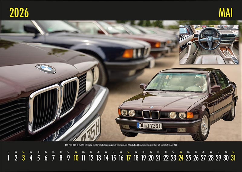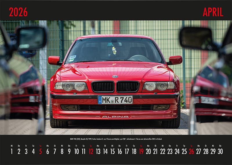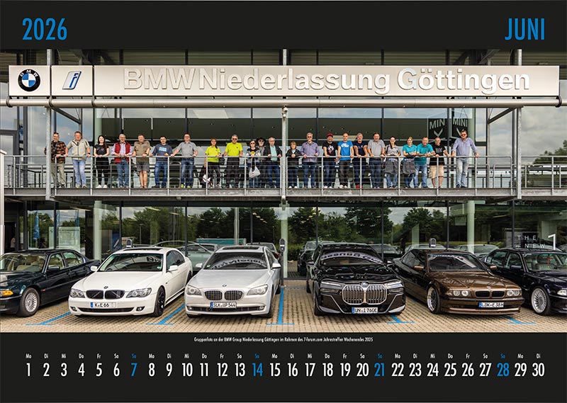 Auch im kommenden Jahr gibt es wieder einen 7-forum.com Wandkalender mit Fotos aus unser Community - und dies bereits zum 23. Male. Wie immer werden alle BMW 7er-Baureihe im Kalender vertreten sein. Hier im Thread gibt es bereits eine Vorschau auf bereits fertig gestellte Kalenderblätter. Es sind aber noch viele Kalenderblätter offen, so dass noch immer Motive bereit gestellt werden können - einfach per e-Mail senden.