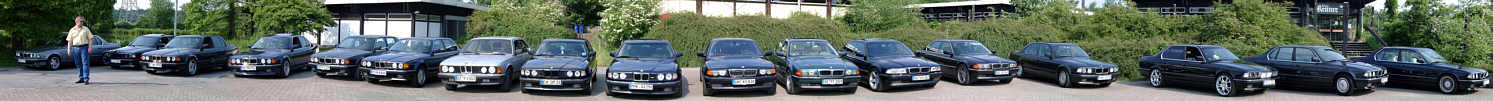 Insgesamt 17 BMW 7er konnten bei dem Treffen begrüßt werden. Dabei waren u. a. Willy Pilgrim ("BillyBoy") mit Silvia Dürer ("Silversurfer") und Kindern, Joachim Schmidt ("BUDDY") mit Familie, Patrick ("Dead84"), Marino Moschüring ("BMW Devil 735") mit Frau, Thorsten ("Knetepappi") mit Frau, Ralph Hülshoff ("Herbie01"), Christian ("Christian") und Matthias ("TheTwinS74") Schütt mit ihren beiden V12-Siebenern, Holger Tielemann ("Holgi M60 V8"), Michael Reichenbach ("Reptile"), Toni Beckers ("Tobeco"), "RoadRunner", Detlev Pirk ("WestIce63"), 2x Claus ("Seven" und "Claus1"), Thom Platzek ("Thom"), Bitte um Meldung, wer in der Liste fehlt, oder falls Namen falsch geschrieben oder falsch zugeordnet wurden. |